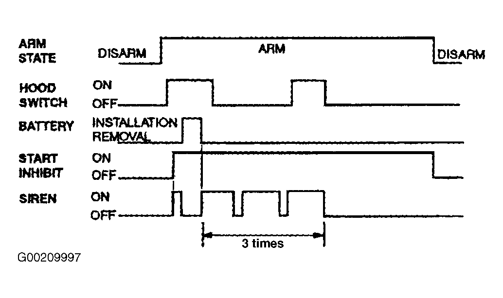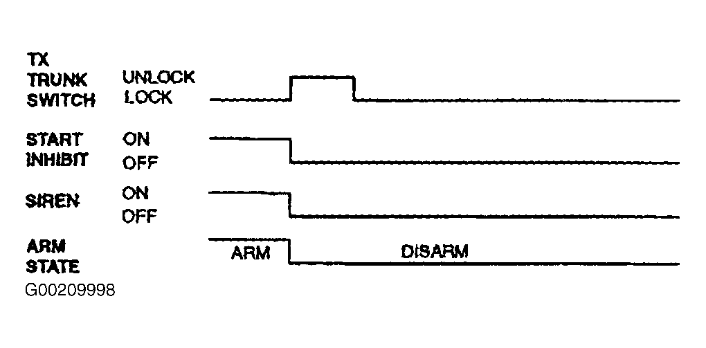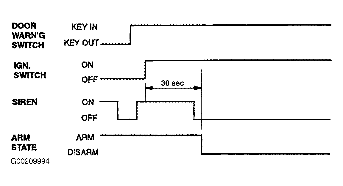 - Disarmed after 30 sec when the ignition switch is turned on while the alarm is sounding. See Fig 6 .