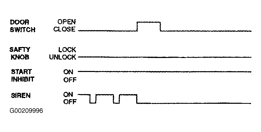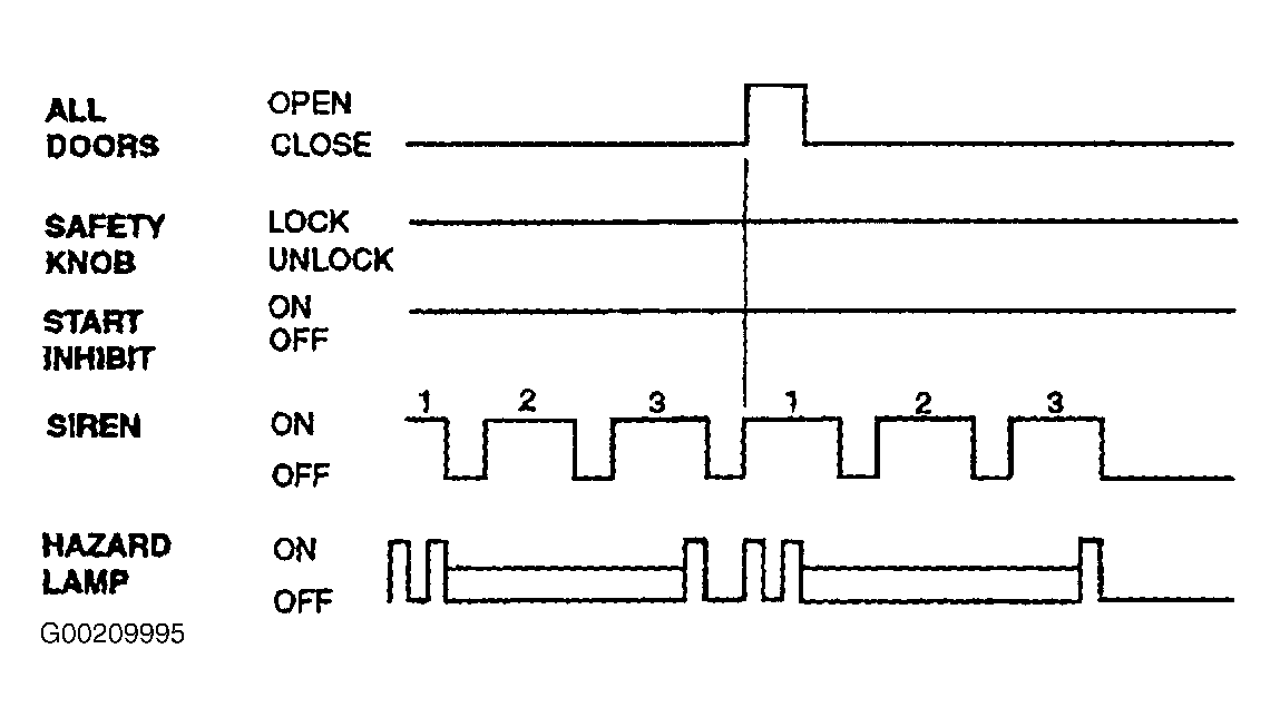 - After finished siren 3 times (120 sec.), start inhibit is ON if door is opened and door latch lock state. See Fig 7 .