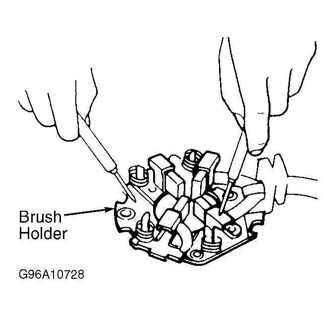 - Ensure brushes slide freely in brush holder. If brushes do not slide freely, check for dirt or contamination. Clean brushes and recheck operation. Replace brushes if brushes still do not slide freely.