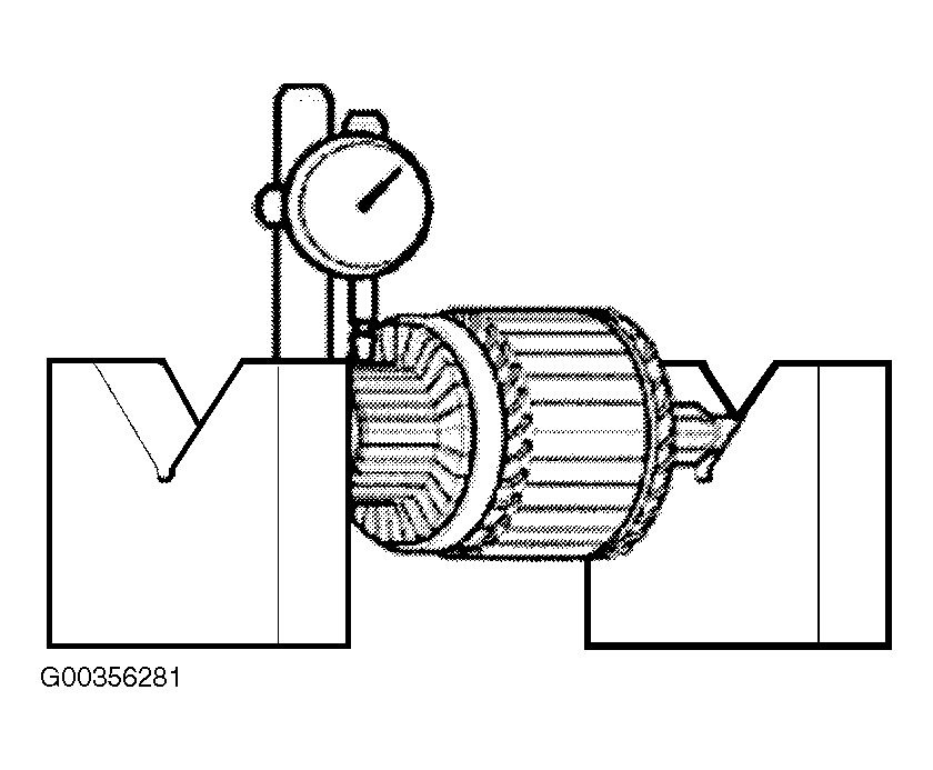 Place the armature on a pair of V-blocks, and check the runout using a dial gauge. See