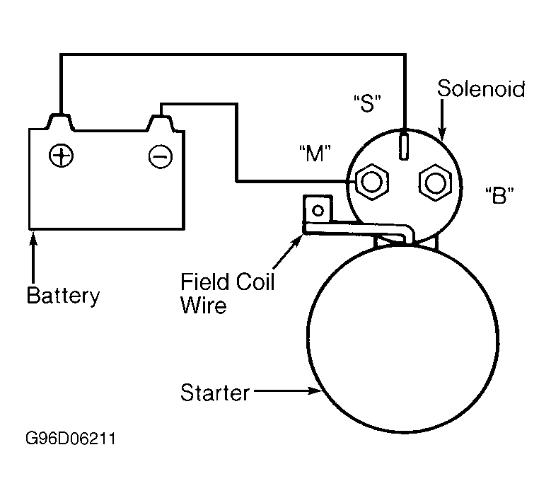1. Disconnect field coil wire from terminal "M" of solenoid.