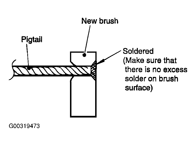 - Insert pigtail into hole provided in the new brush and solder pigtail into position. Ensure that pigtail and excess solder do not come out onto brush surface. See Fig 1 .