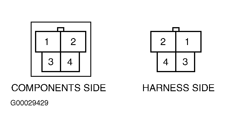 3. Disconnect pre-excitation resistor 4-pin connector, located in engine compartment fuse box. Connect the positive lead of the DVOM to terminal No. 4 and the negative lead to terminal No. 1 of the pre-excitation resistor. See Fig 1 .