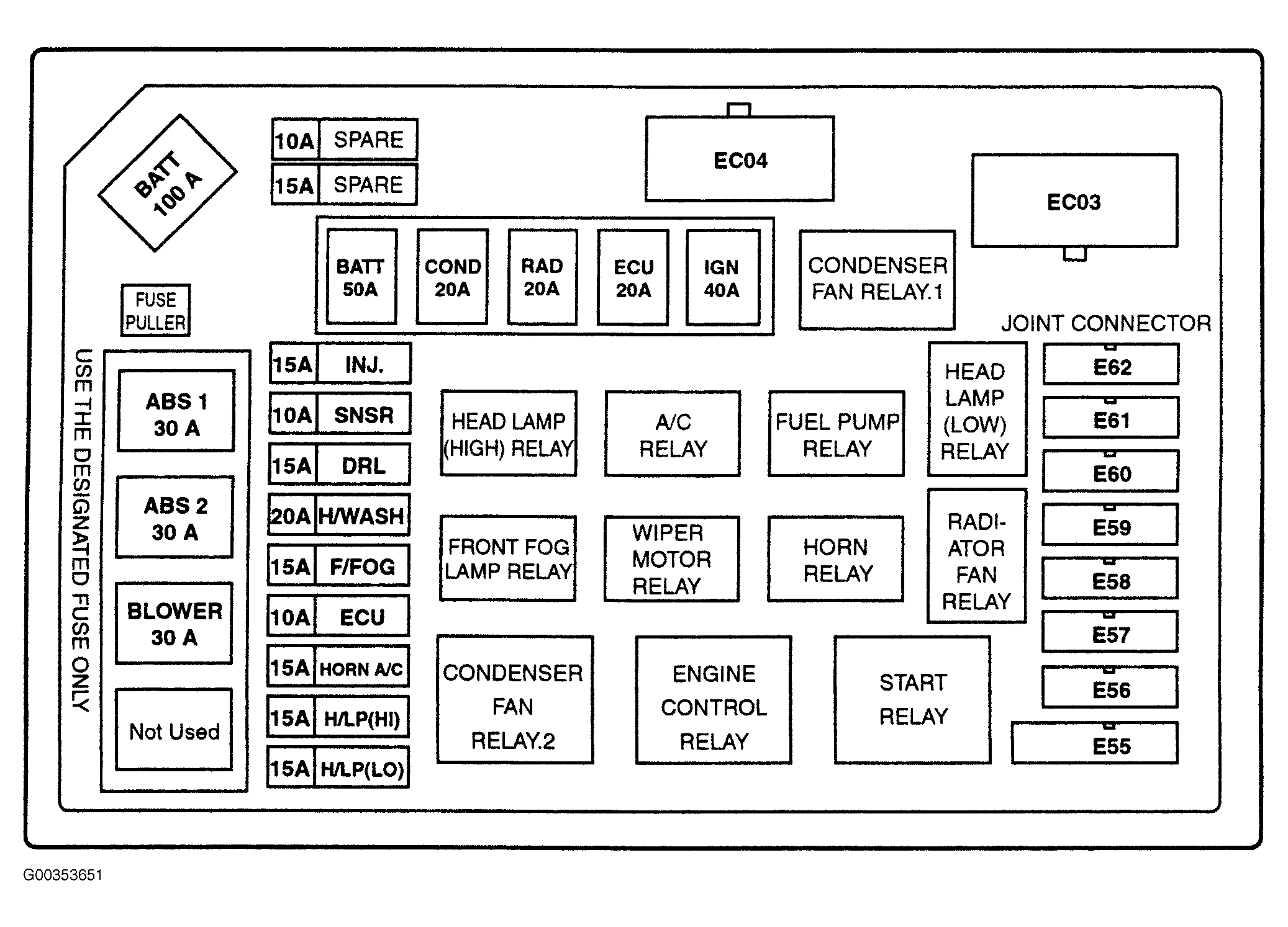 | Fusible Link | In Engine Compartment Relay & Fuse Box. See Fig 2 . |