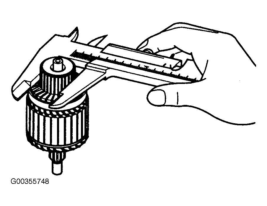 - Using caliper, measure commutator outside diameter at center of commutator. See Fig 3 . Replace armature if commutator outside diameter is not within specification. See STARTER SPECIFICATIONS .