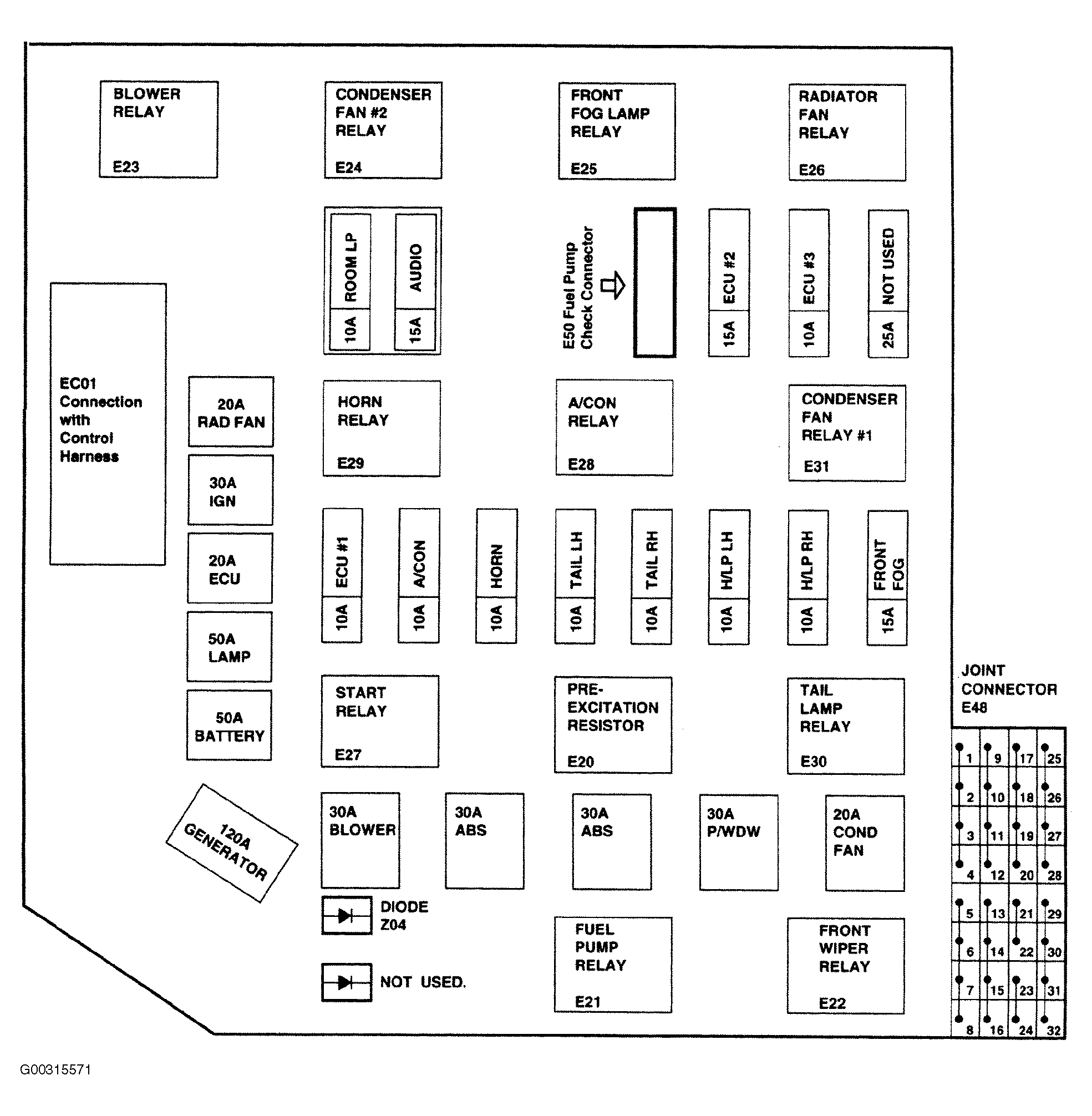 | Fusible Link | In Engine Compartment Relay & Fuse Box. See Fig 3 . |