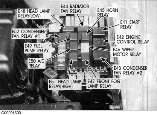 | Engine Compartment Relay & Fuse Box | In left front corner of engine compartment. See Figure. |