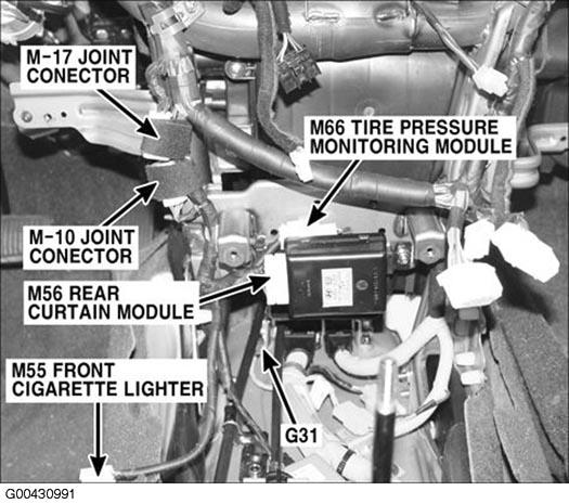 | Tire Pressure Monitoring Module | Under front of center console. See Figure. |