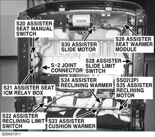 | Assister Seat Warmer Module | Under right front seat. See Figure. |