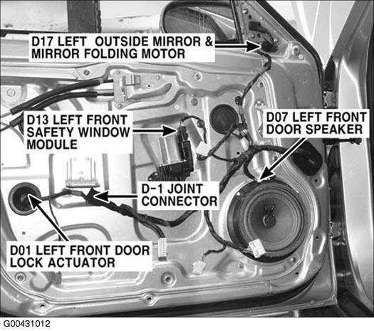 | Front Safety Window Module (Left) | In left front door. See Figure. |