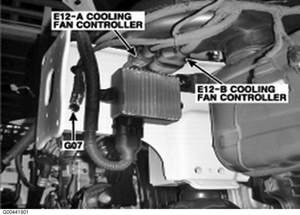 | Cooling Fan Controller | Left front of engine compartment. See Figure. |