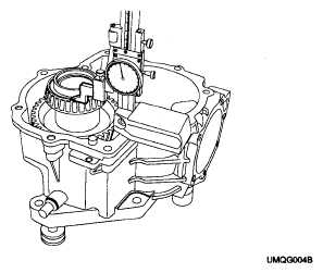 PART NUMBER SPACER THICKNESS(mm) 47385-39125 1.25-1.28 47385-39129 1.29-1.32 47385-39133 1.33-1.36 47385-39137 1.37-1.40 47385-39141 1.41-1.44 47385-39145 1.45-1.48 47385-39149 1.49-1.52 47385-39153 1.53-1.56 47385-39157 1.57-1.60 47385-39161 1.61-1.64 47385-39165 1.65-1.68 47385-39169 1.69-1.72 47385-39172 1.720-1.739 47385-39174 1.740-1.759 47385-39176 1.760-1.779 47385-39178 1.780-1.799 47385-39180 1.800-1.819 47385-39182 1.820-1.839 47385-39184 1.840-1.859 47385-39186 1.860-1.879 47385-39188 1.880-1.899 47385-39190 1.900-1.919 47385-39192 1.920-1.939 47385-39194 1.940-1.959 47385-39196 1.960-1.979 47385-39198 1.980-1.999 47385-39200 2.000-2.019 47385-39202 2.020-2.039 47385-39204 2.040-2.059 47385-39206 2.060-2.079 47385-39208 2.080-2.099 47385-39210 2.100-2.119 47385-39213 2.13-2.16 47385-39217 2.17-2.20 47385-39221 2.21-2.24 47385-39225 2.25-2.28 47385-39229 2.29-2.32 47385-39233 2.33-2.36 - Install the pinion assembly with the selected spacer above and measure the circumference backlash on pinion.