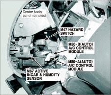 | A/C Control Module | Center of dash. See Figure. |