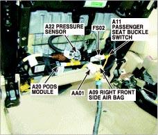| PODS Module | Under right front seat. See Figure. |
