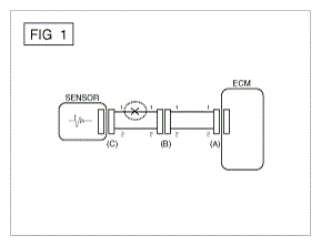 - With each connector still connected, measure the voltage between the chassis ground and terminal 1 of each connectors (A), (B) and (C) as shown in [Fig 4].