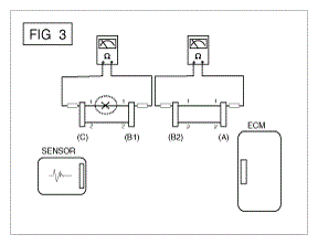 - Disconnect connector (B), and measure for resistance between connector (C) and (B1) and between (B2) and (A) as shown in [Fig 3].