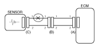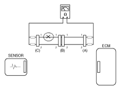 - Disconnect connectors (A), (C) and measure resistance between connector (A) and (C) as shown in [FIG. 2].