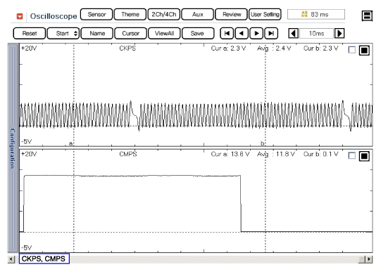 Check signal waveform of CKPS and CMPS using a GDS.