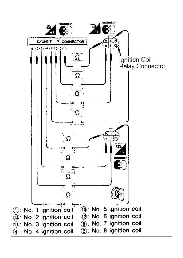 - Check harness continuity between ECU and ignition coil in each cylinder. See Fig 1