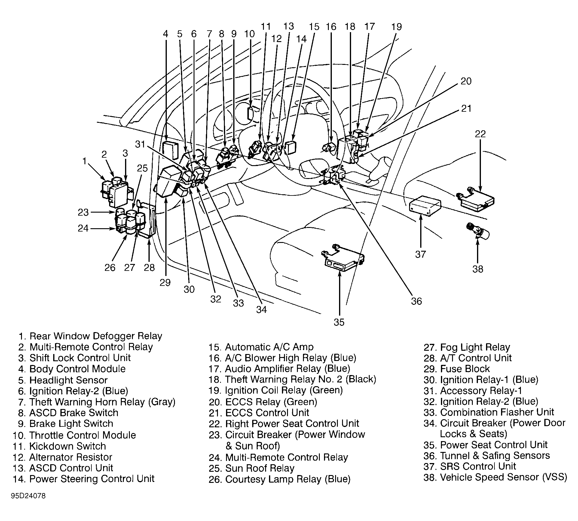 | Theft Warning Control Unit | Behind right side of dash, above glove compartment. See Figure . |
