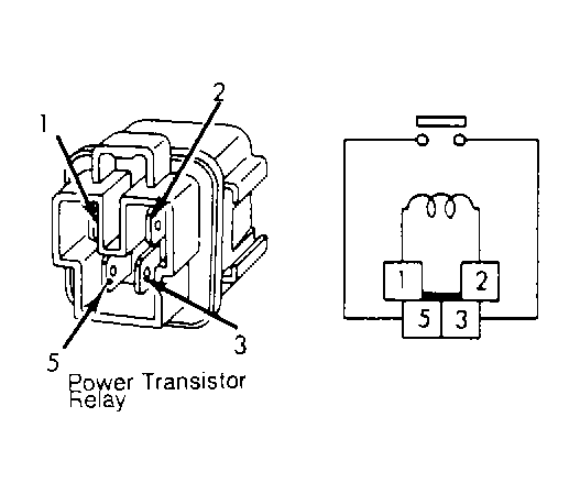 - Disconnect power source and recheck continuity across terminals No. 3 and 5. No continuity should exist. If continuity exists, check harness and connectors. If harness and connectors are okay, replace power transistor relay.