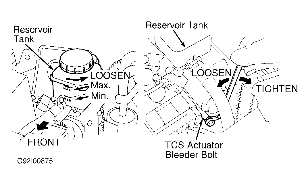 Loosen TCS actuator bleeder before disconnecting TCS operating fluid circuit. See
