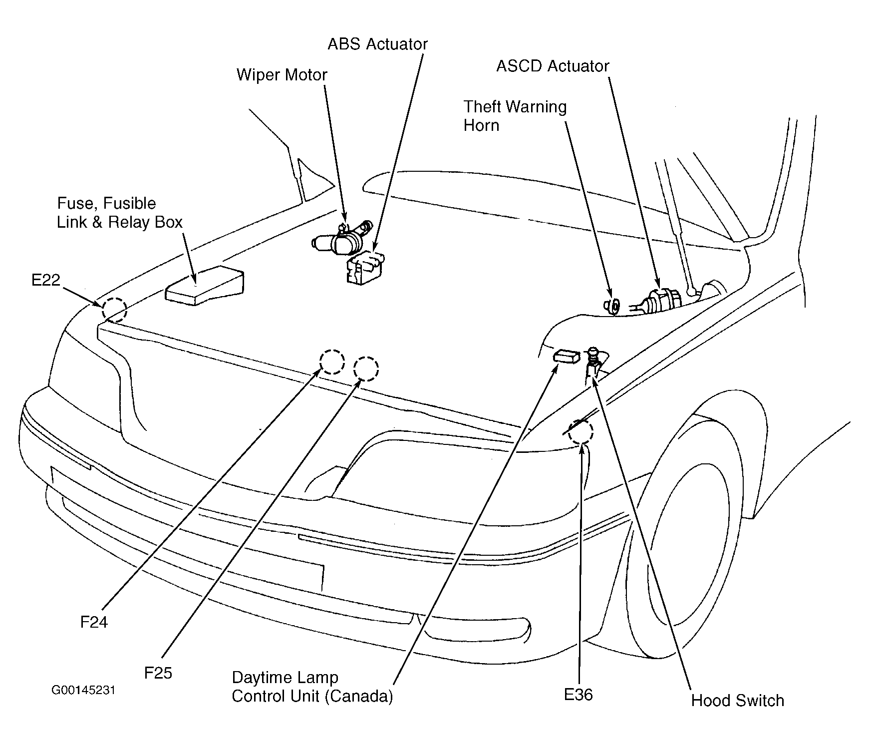 Daytime Lamp Control Unit (Canada) Left side of engine compartment. See Figure .