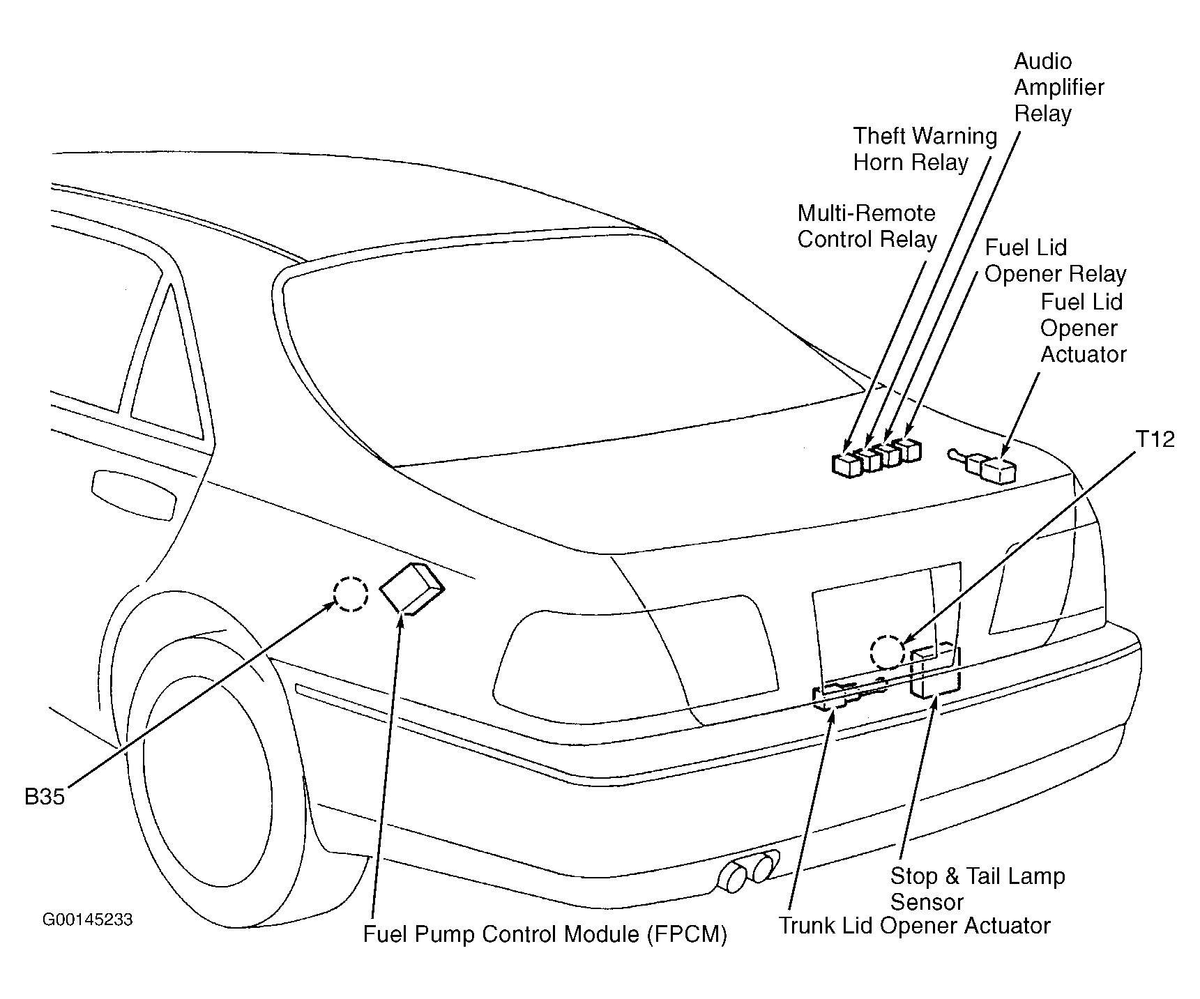 Fuel Pump Control Module (FPCM) On left side of luggage compartment. See Figure .