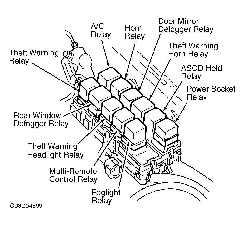 | Multi-Remote Control Relay | Left Side Of Engine Compartment, In Relay Box. See Fig 1 . |