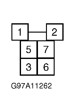 - Ensure multi-remote relay is still removed. Measure voltage between terminals No. 3 (Orange wire) and No. 5 (Gray/Red wire) at multi-remote relay harness connector. Also, measure voltage between terminals No. 6 (Orange wire) and No. 7 (Gray/Blue wire) at multi-remote relay harness connector. If battery voltage exists, repair open in Pink wire between SECU and multi remote relay. If battery voltage does not exist, repair open in Gray/Red and/or Gray/Blue wires between multi-remote relay and turn signal lights.