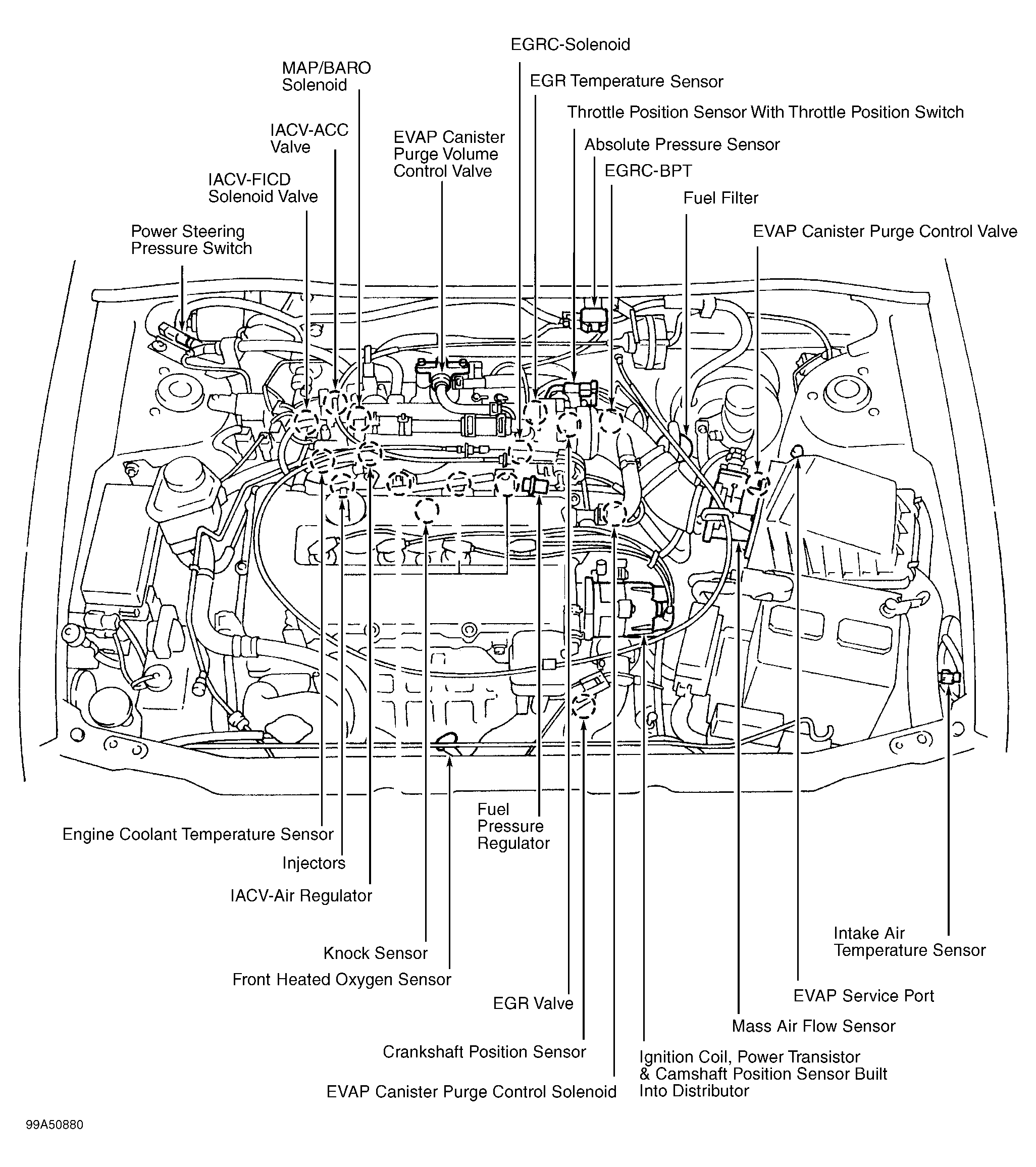 Fig 5: Identifying Underhood Engine Performance Component Locations (Pathfinder & QX4)