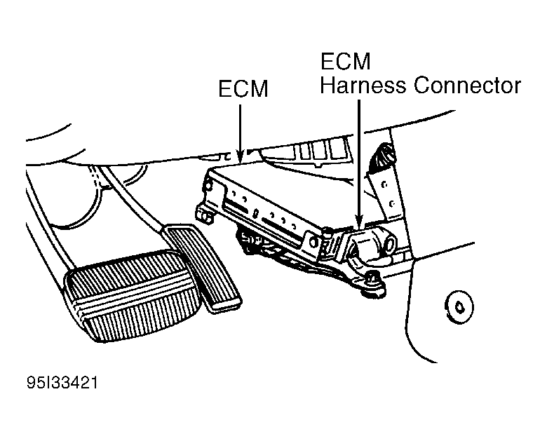 - Disconnect PCM harness connector. See Figure, Figure, Figure, Figure or Figure