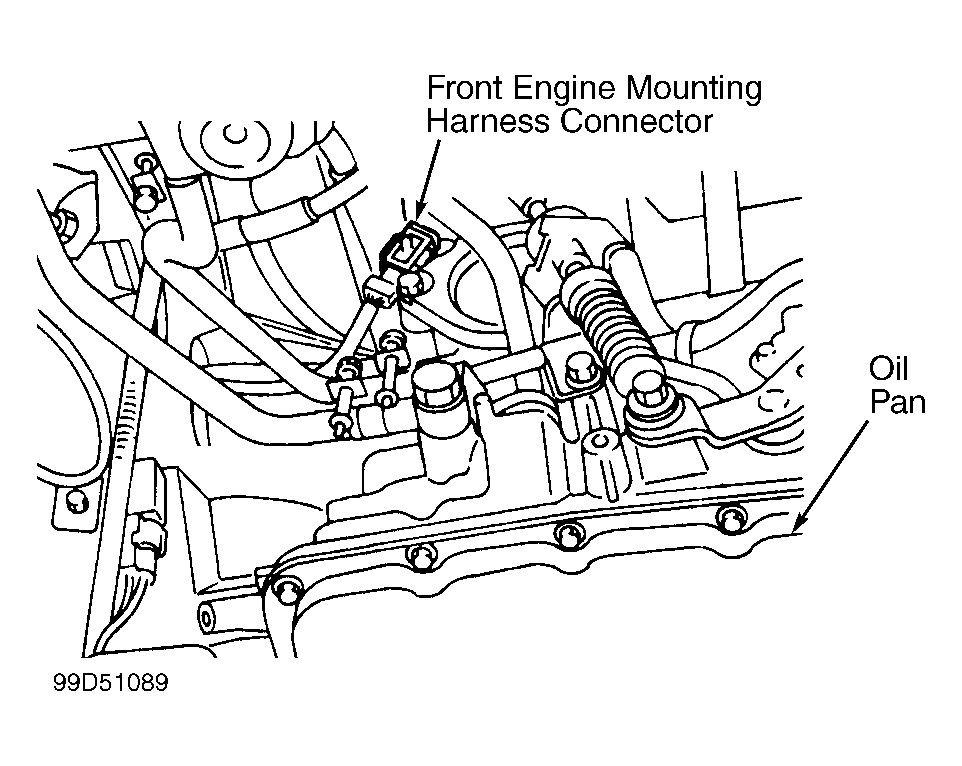 1. Start engine and warm to normal operating temperature. Set parking brake and let engine idle. While depressing brake pedal, shift transmission into Drive. Observe amount of body vibration. Increase engine speed to more than 1000 RPM. Disconnect front engine mount harness connector. See Fig 1.