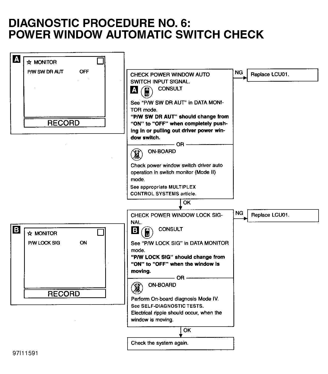 - If power window automatic function operates, power window system is okay at this time. If power window automatic function does not operate, perform DIAGNOSTIC PROCEDURE 6: POWER WINDOW AUTOMATIC SWITCH CHECK under DIAGNOSTIC TESTS. See Figure .