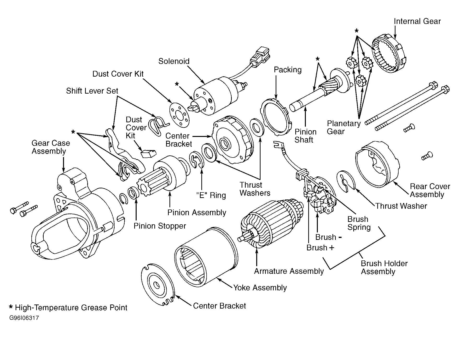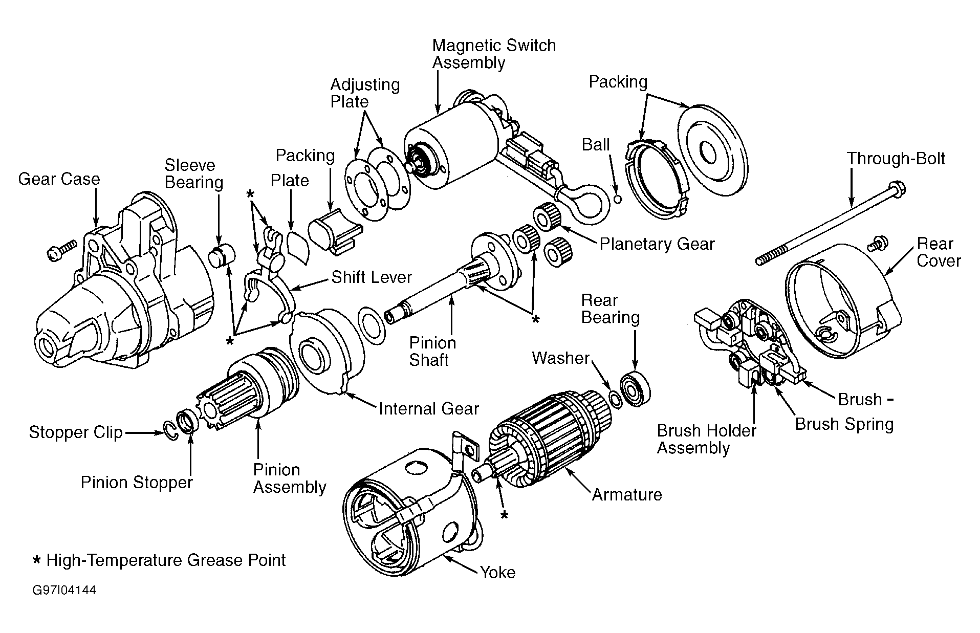 Fig 1: Exploded View Of Hitachi Starter (I30 Shown, G20 Is Similar)
