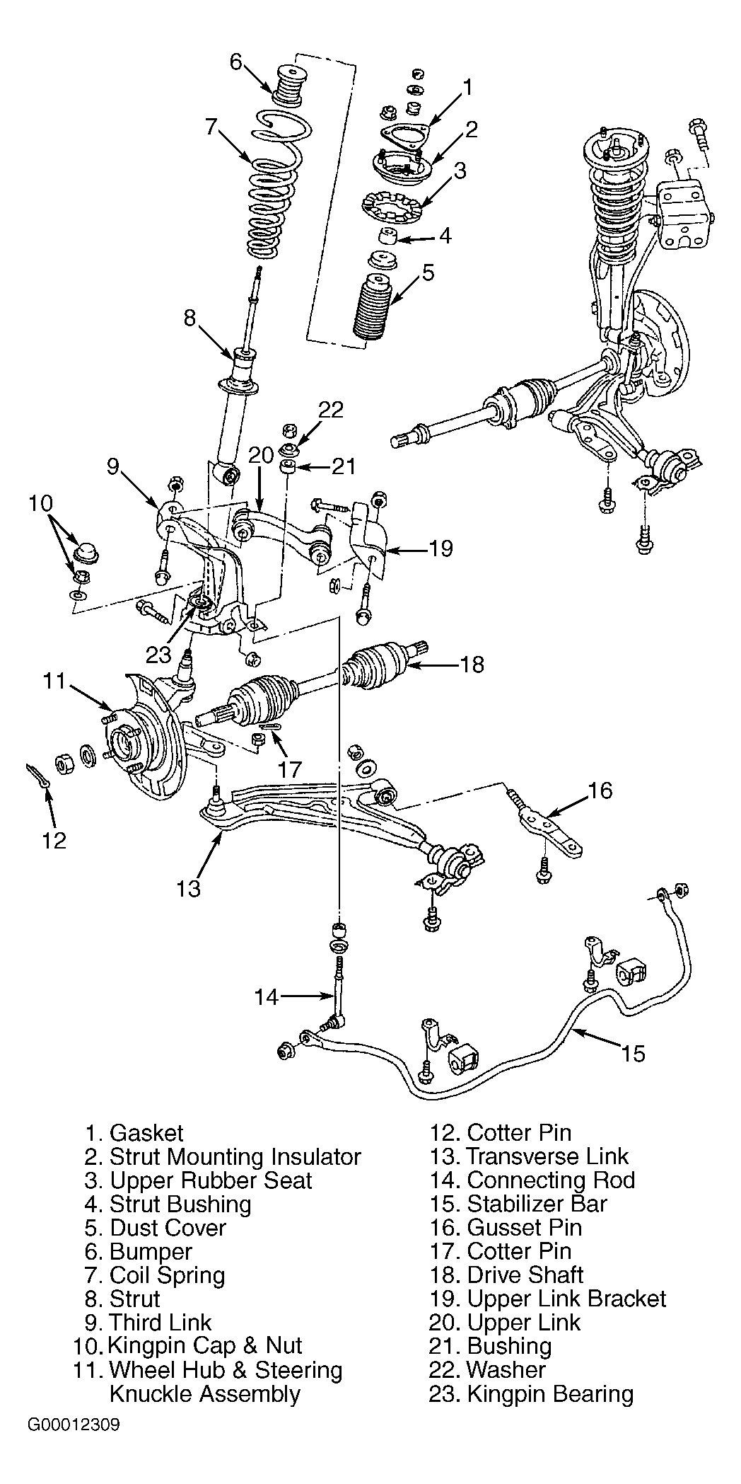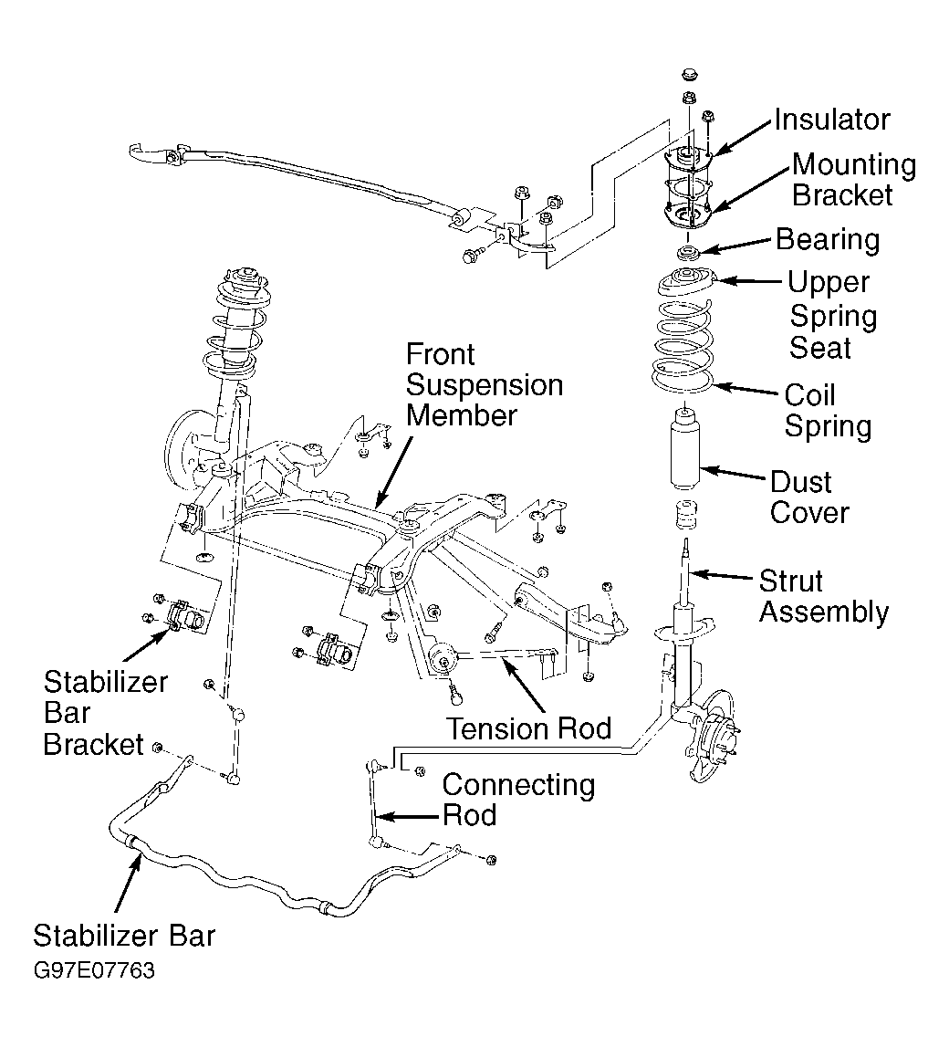 All models use MacPherson struts and a stabilizer bar. All models have transverse links. Some models also use tension rods with transverse links. See Fig 1, Fig 2 or Fig 3 .