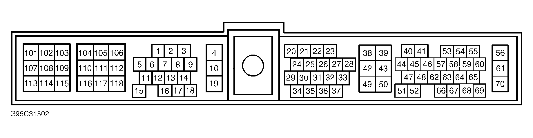 2. Turn ignition off. Disconnect ECM harness connector. Check continuity between ground and ECM harness connector terminals No. 10, 19, 39, 43, 106, 112 and 118 (Black wires). See Fig 2. If continuity exists on all wires, go to next step. If continuity does not exist on any wire, repair open in affected wire. See WIRING DIAGRAMS article.