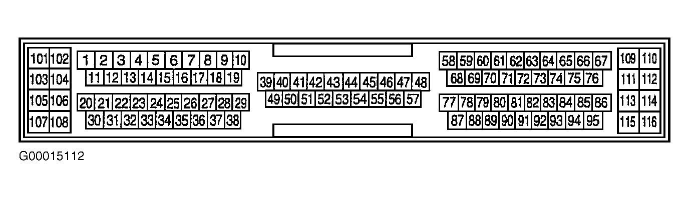 4. Turn ignition off. Remove ECM relay. See Fig 2. Disconnect ECM harness connector. Check continuity of White wire between ECM harness connector terminals No. 110 and 112 and ECM relay harness connector terminal No. 5. See Figure and Figure . Also, check circuit for short to ground and short to voltage. Repair circuit as necessary. If circuit is okay, go to next step.