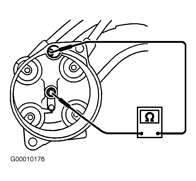 - Remove distributor cap. Measure resistance of resistor (built into distributor cap) as shown in illustration. See Fig 1. Resistance should be 4-8 k/ohms at 77°F (25°C). If resistance is as specified, go to next step. If resistance is not as specified, replace distributor cap.