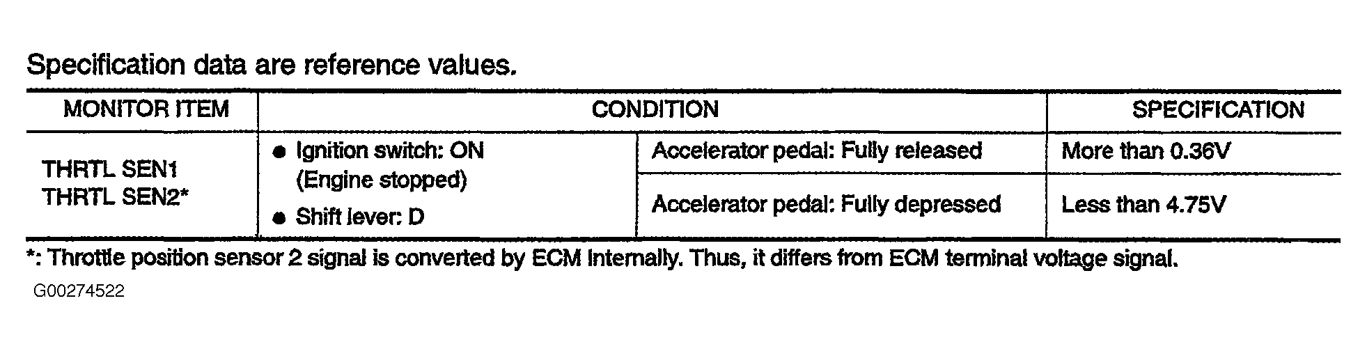 For throttle position sensor specification data, see