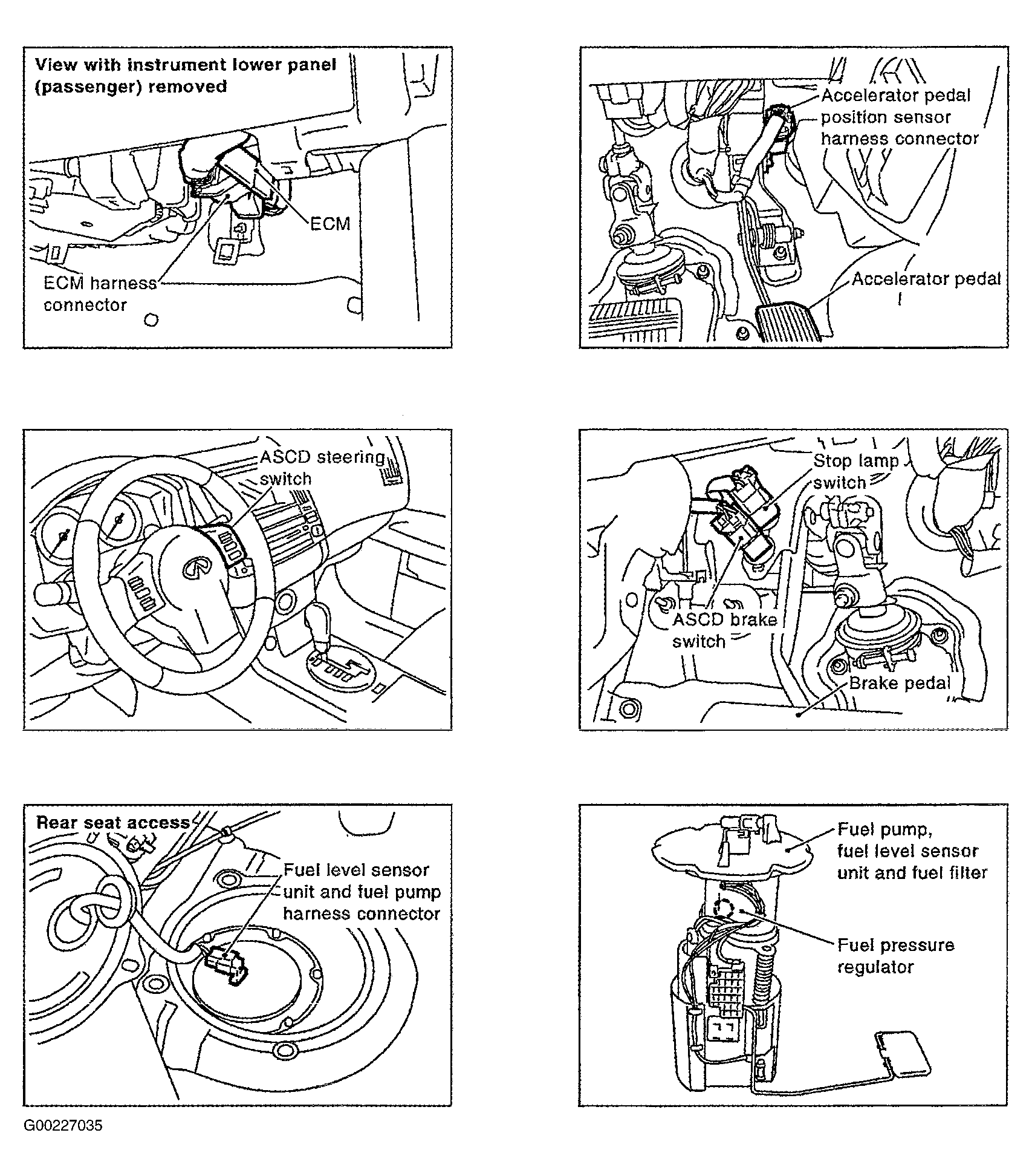 ECM is located behind the passenger side instrument lower panel. See