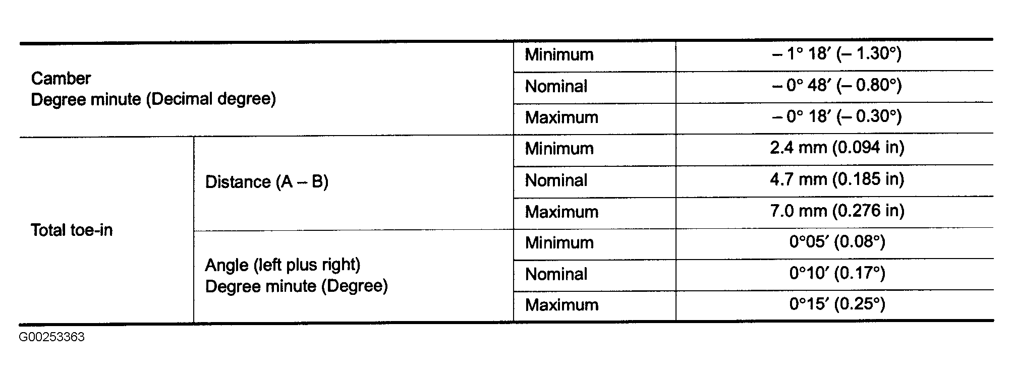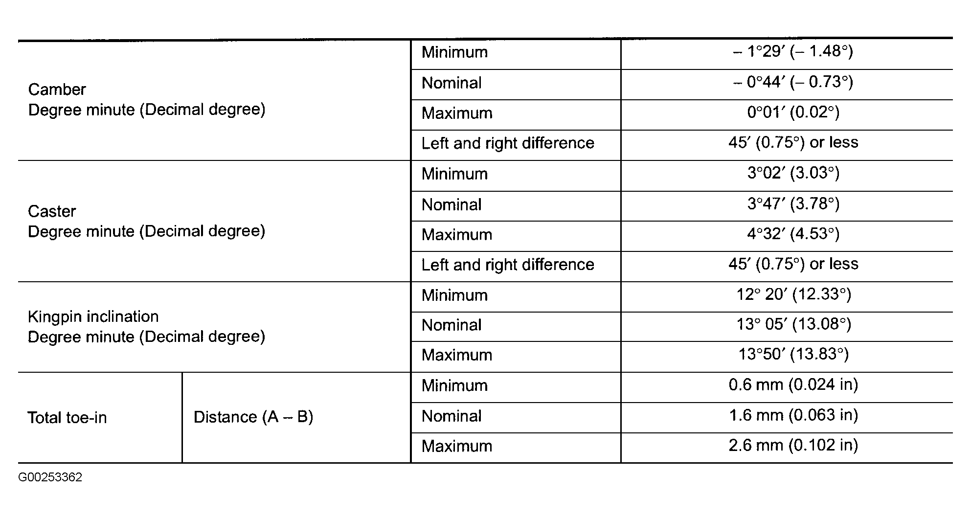 Fig 1: Front Wheel Alignment Specifications (FX35 & FX45)