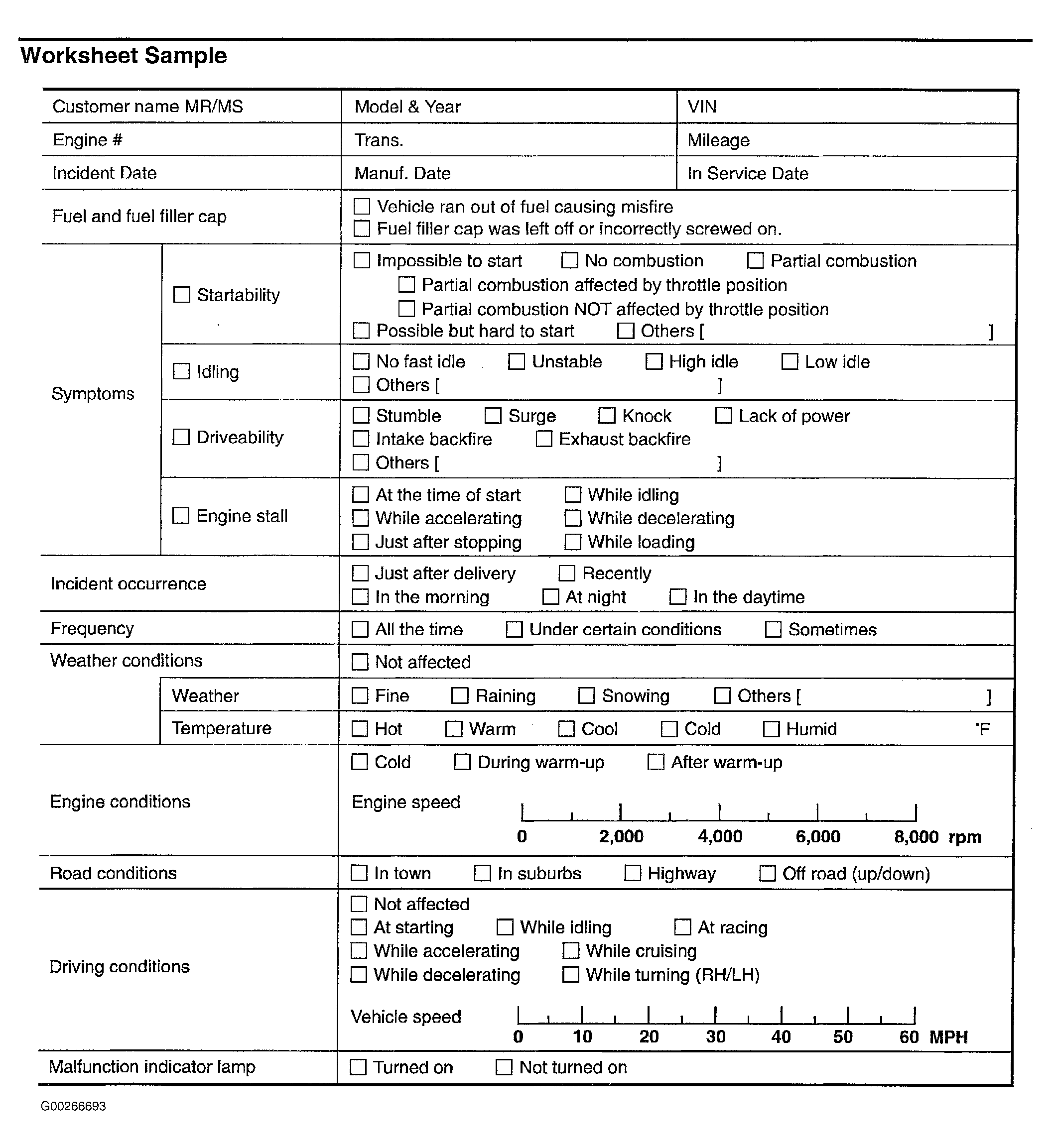 1. Get detailed information about the conditions and the environment when the incident/symptom occurred using the diagnostic work sheet. See Figure .
