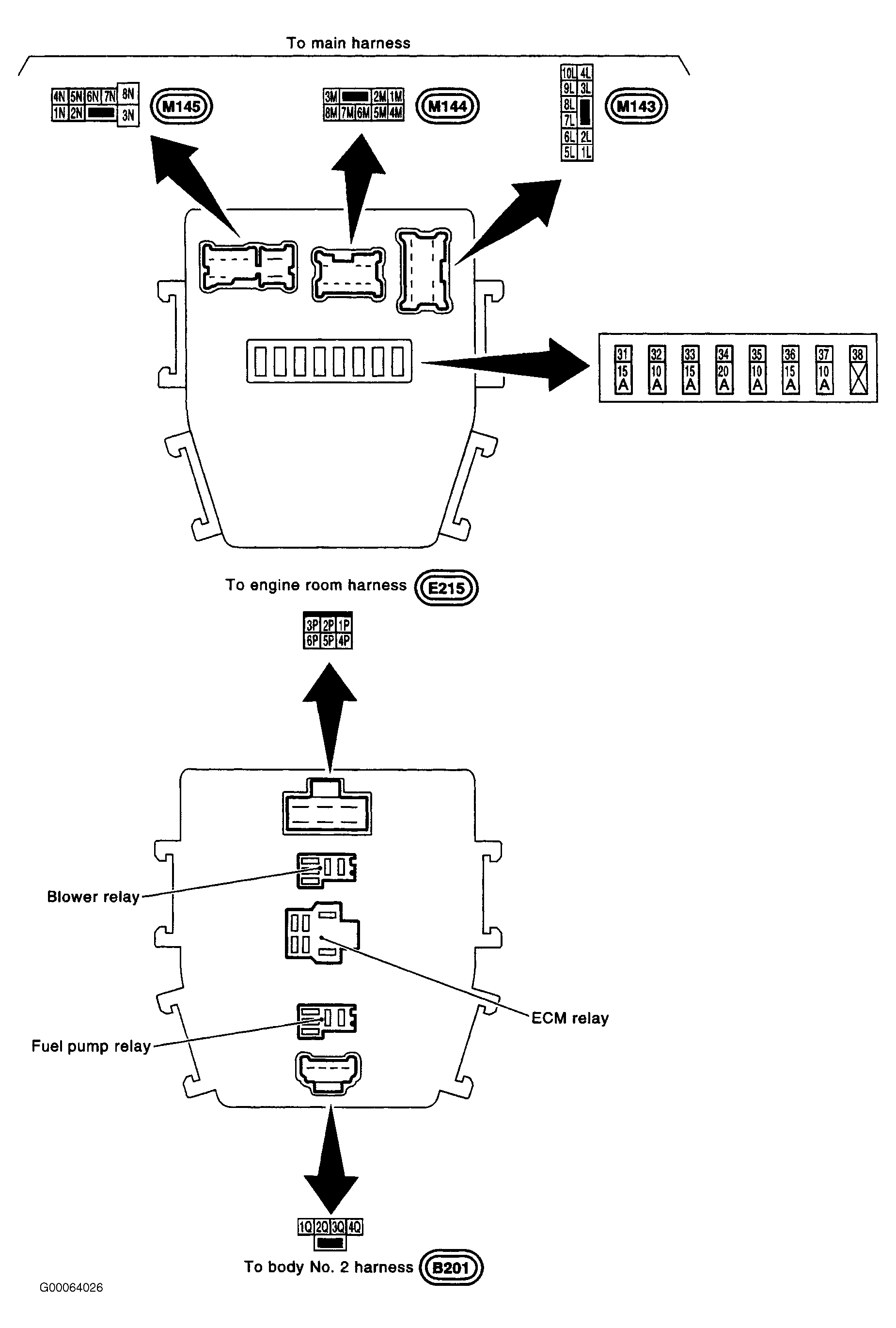 • Fuse block (J/B) No. 2 connector M143 and E215. See Fig 1.