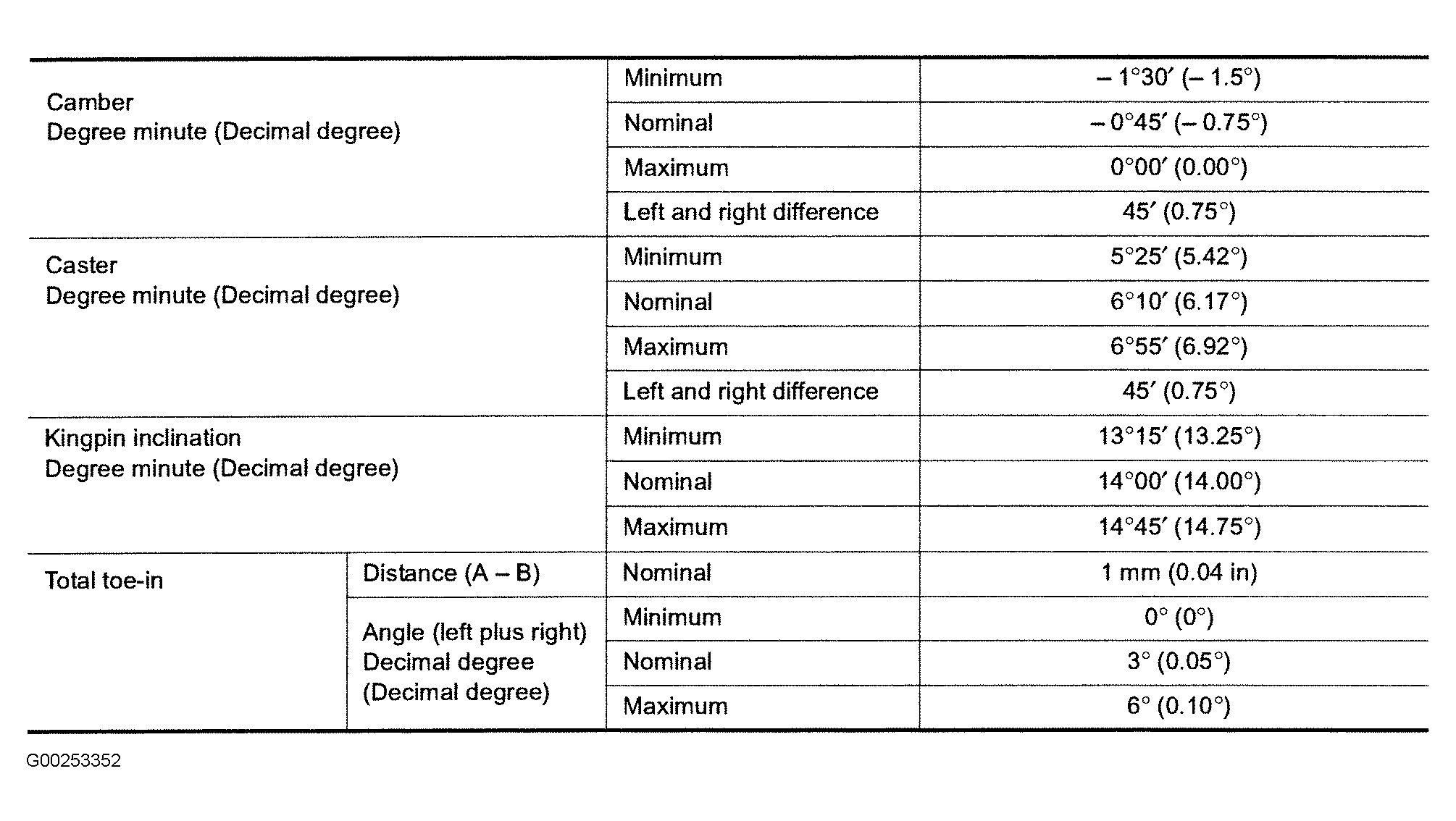 Fig 1: Front Wheel Alignment Specifications (Q45)