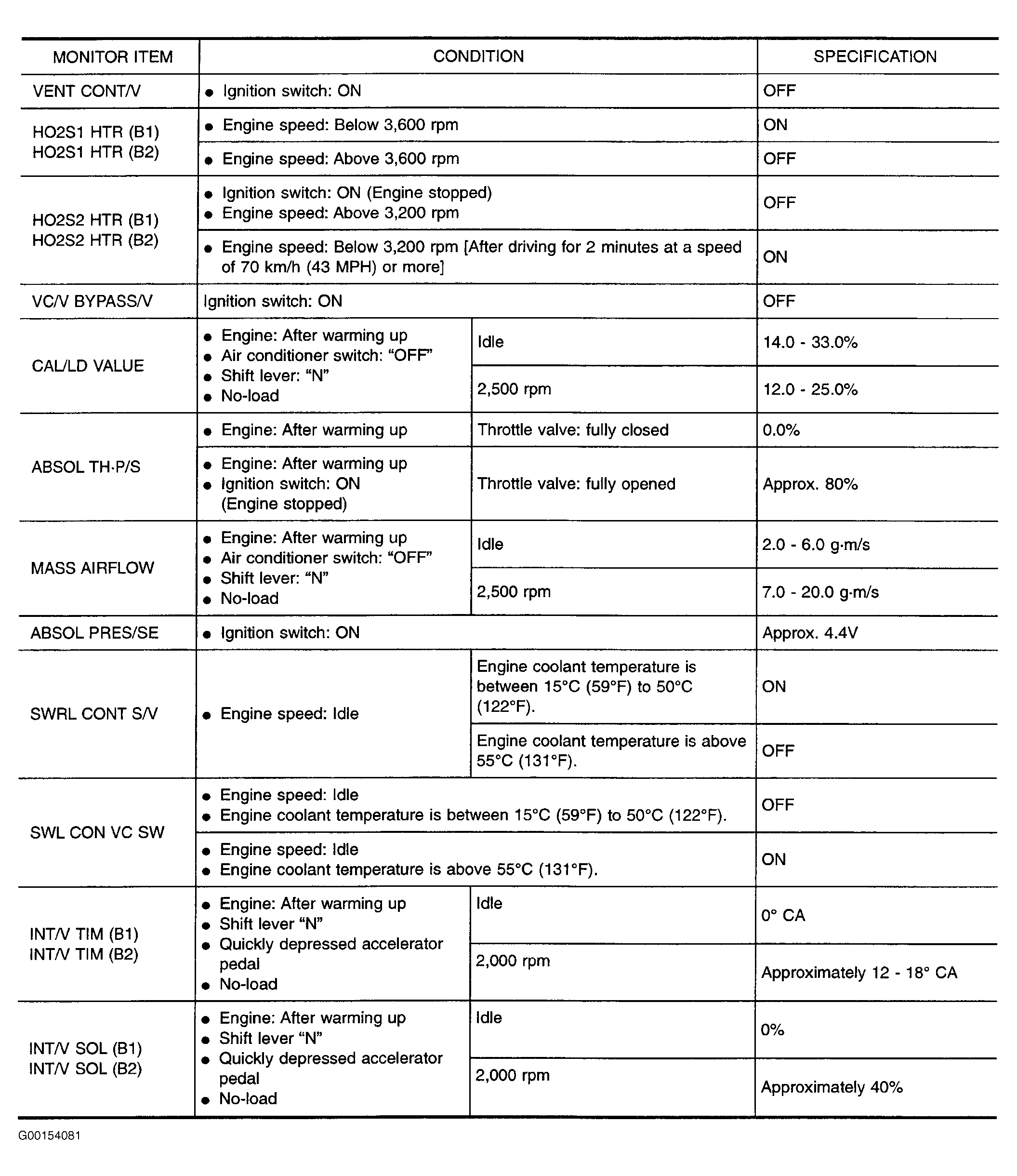 Home >> Infiniti >> 2003 >> QX4 RWD >> Repair and Diagnosis >> Engine Performance >> System >> Engine Controls - Self-Diagnostics >> Scan Tool Usage >> Consult-II >> Data Monitor Mode Reference Values