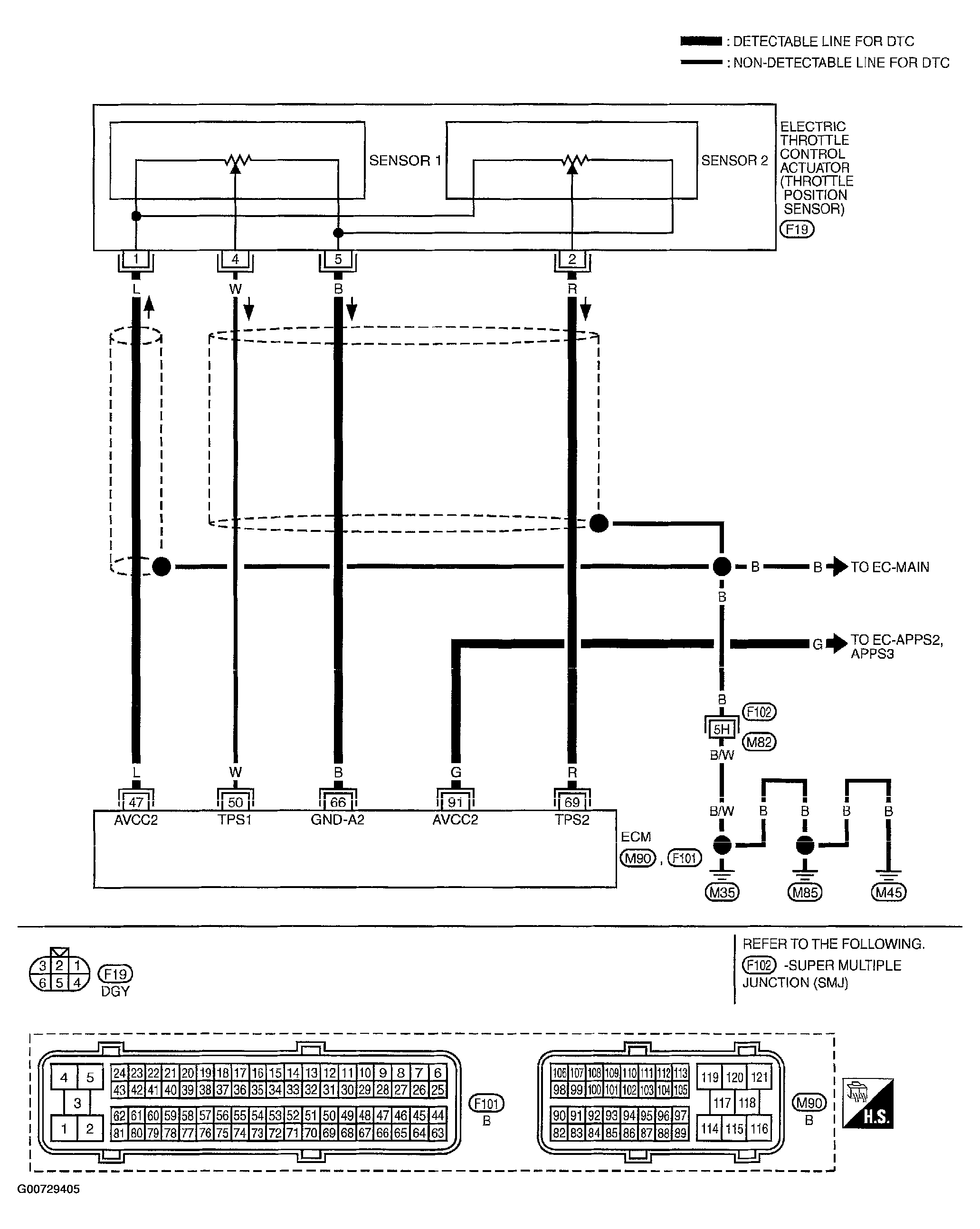 - Harness for short to power and short to ground, between the following terminals.THROTTLE POSITION SENSOR 2 CIRCUIT TESTS