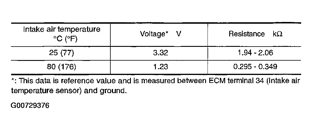 For intake air temperature specifications, see Figure and for graph of thermistor performance, see Figure.
