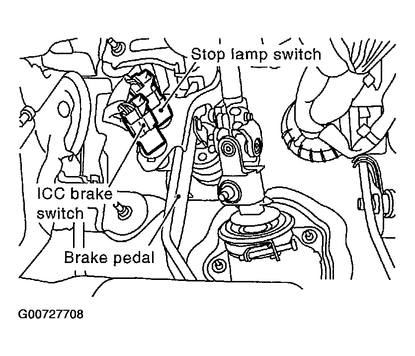 When the brake pedal is depressed, ICC brake switch is turned OFF and stop lamp switch is turned ON. See Figure. ECM detects the state of the brake pedal by this input of two kinds (ON/OFF signal)