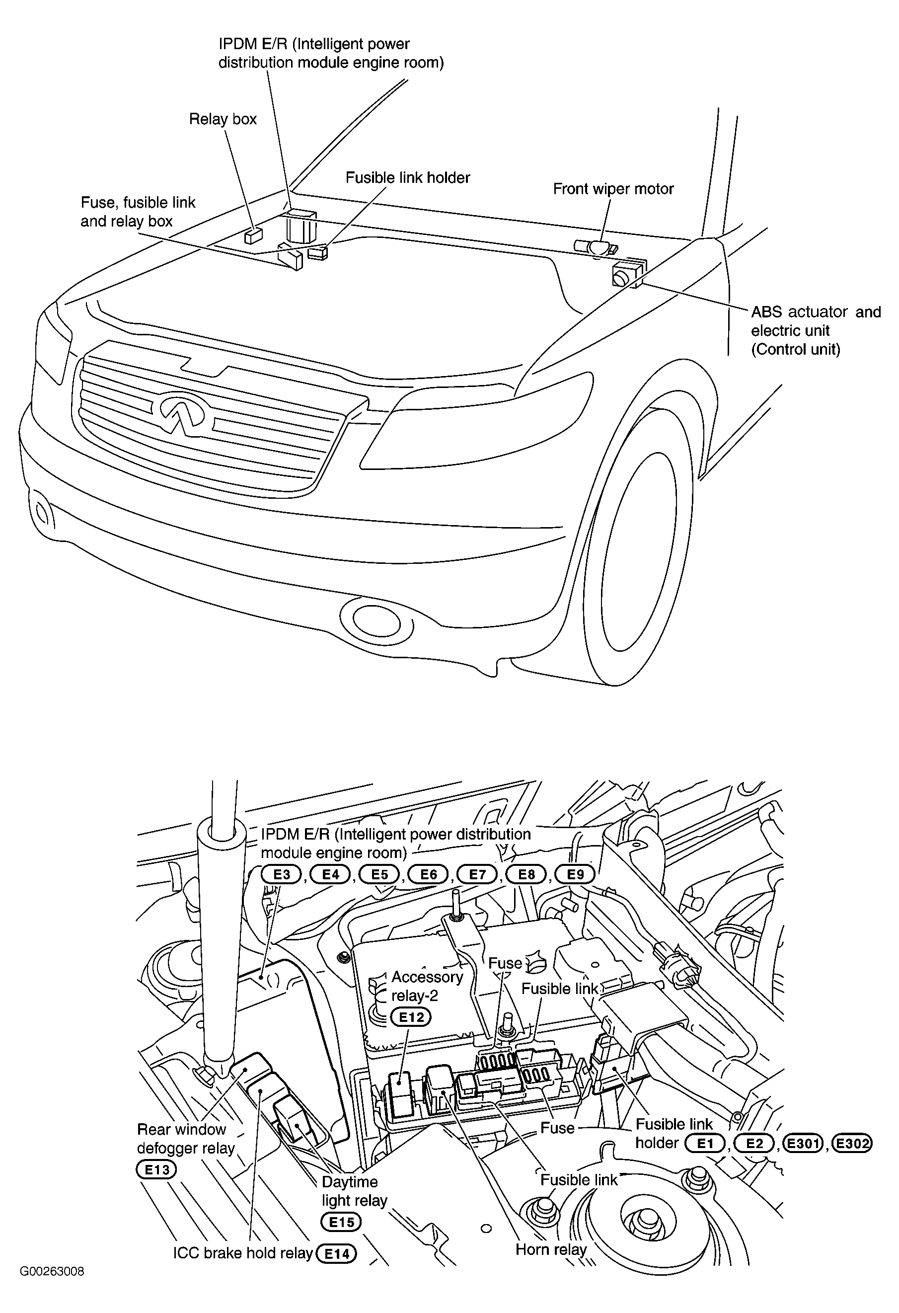 | ABS Actuator & Electric Unit (Control Unit) | Left rear of engine compartment. See Figure . |
